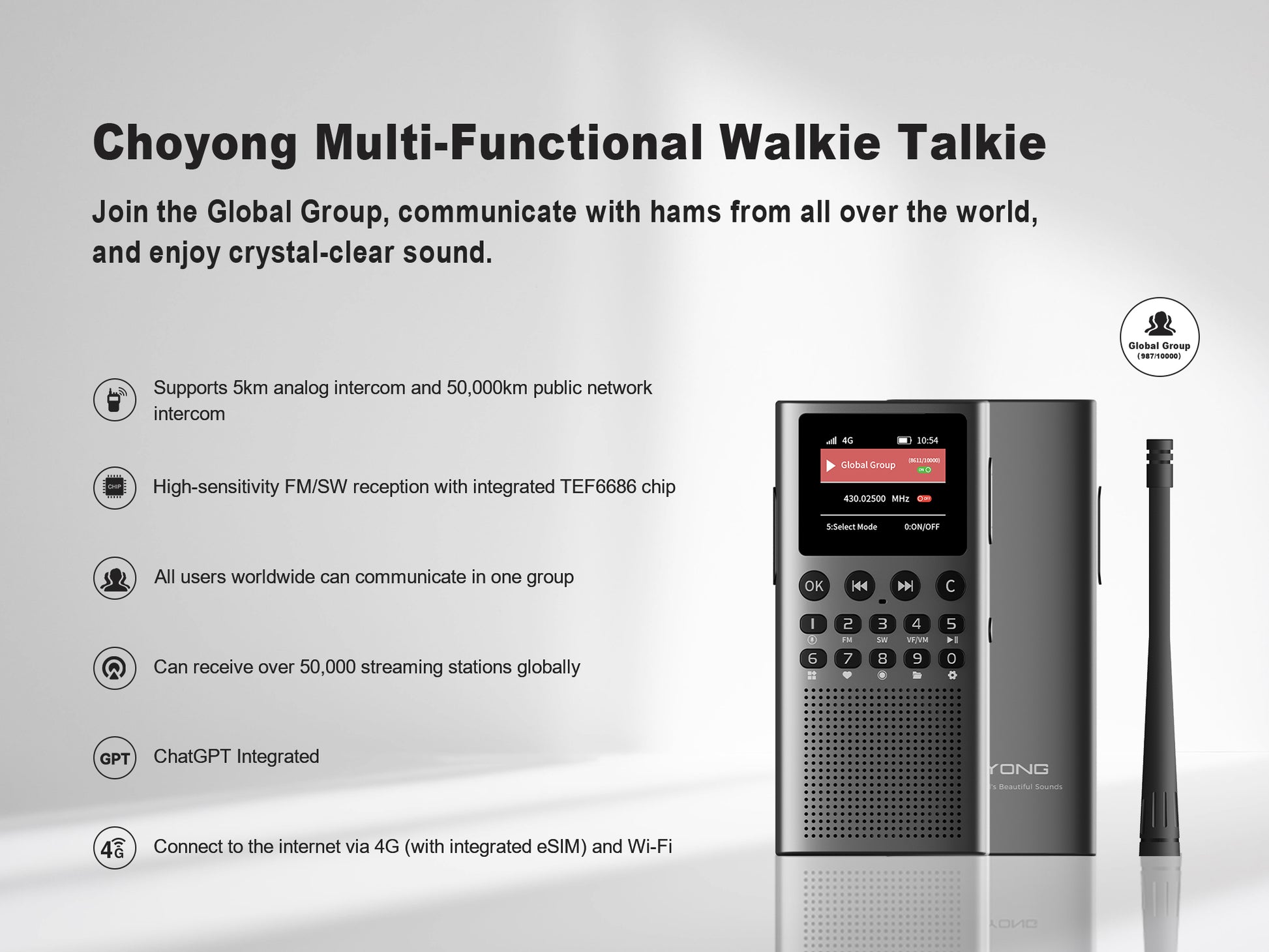 It has many functions and excellent sound quality. I really enjoy listening to the radio. You definitely shouldn't miss CHOYONG Radio.