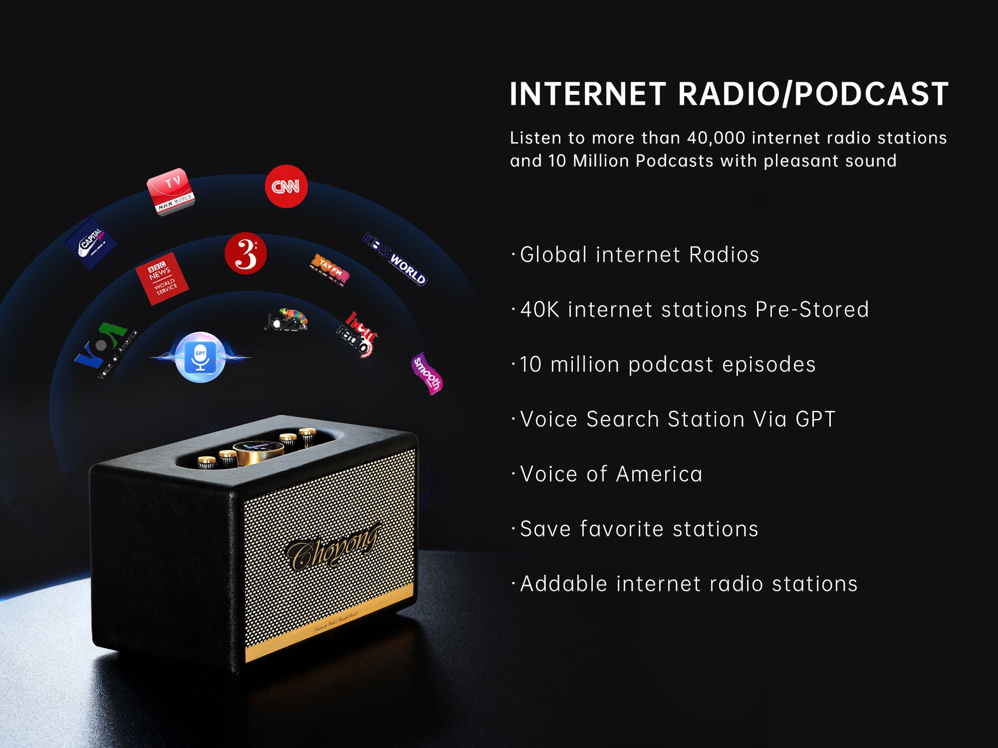 It has many functions and excellent sound quality. I really enjoy listening to the radio. You definitely shouldn't miss CHOYONG Radio.