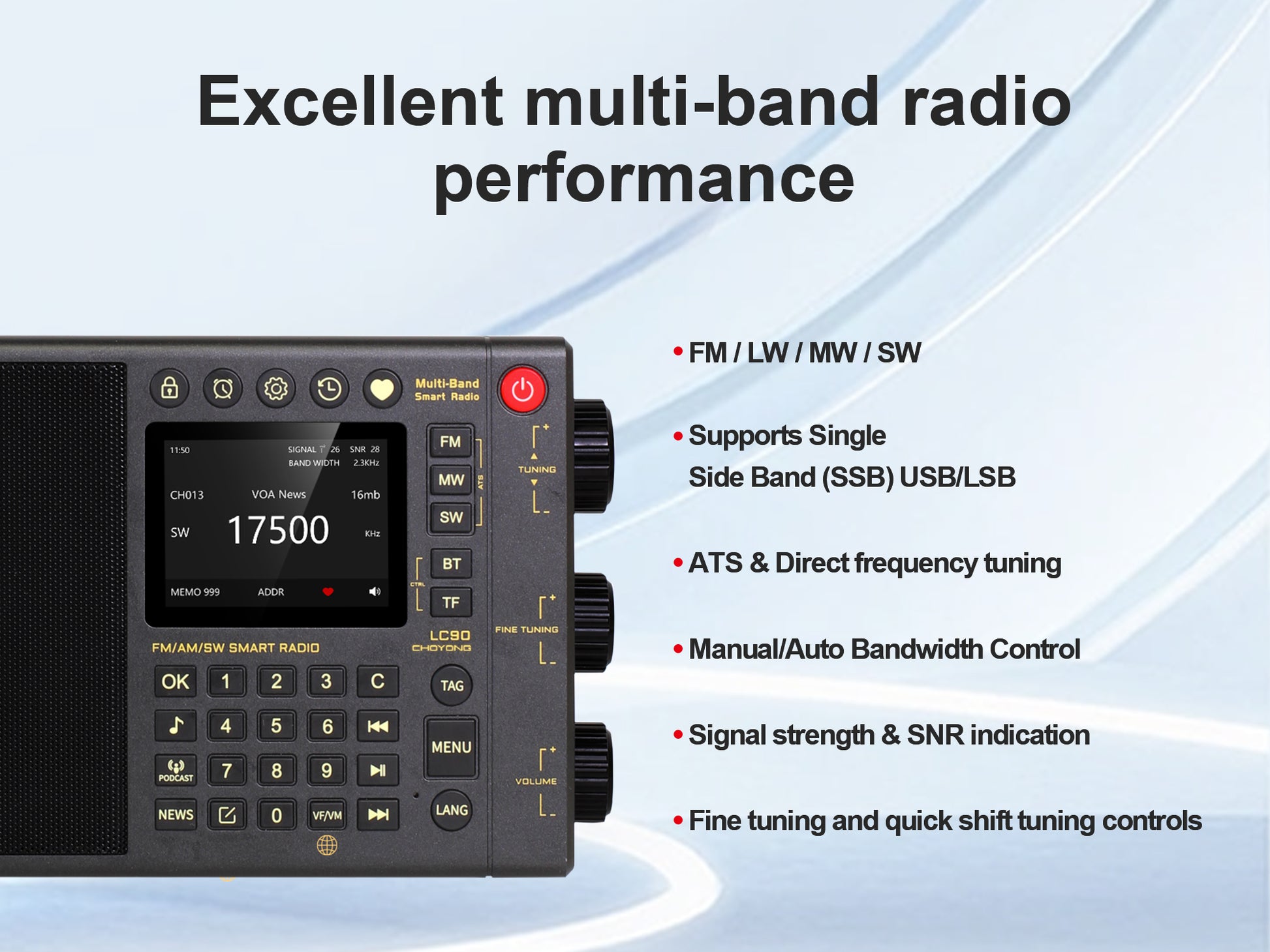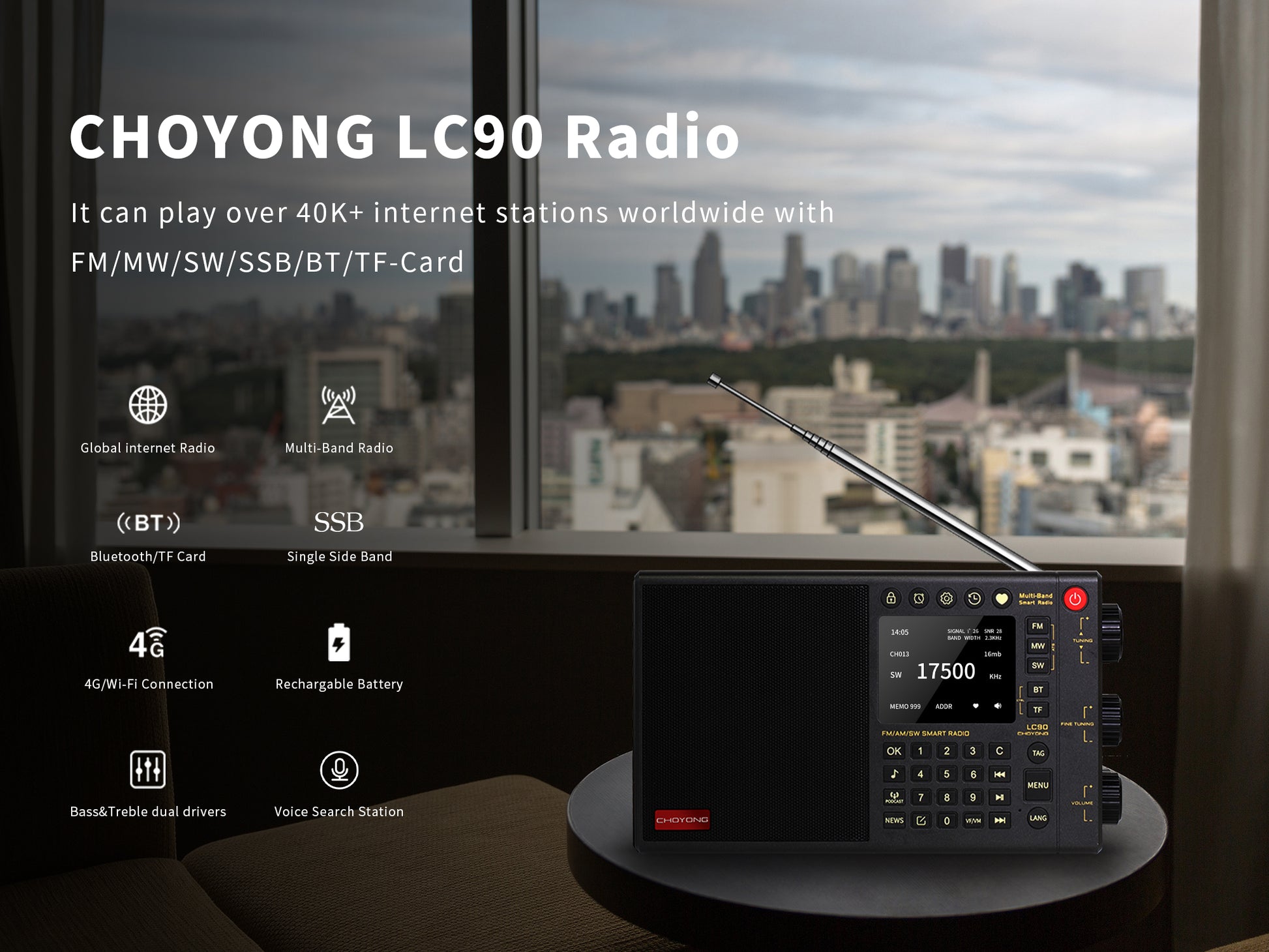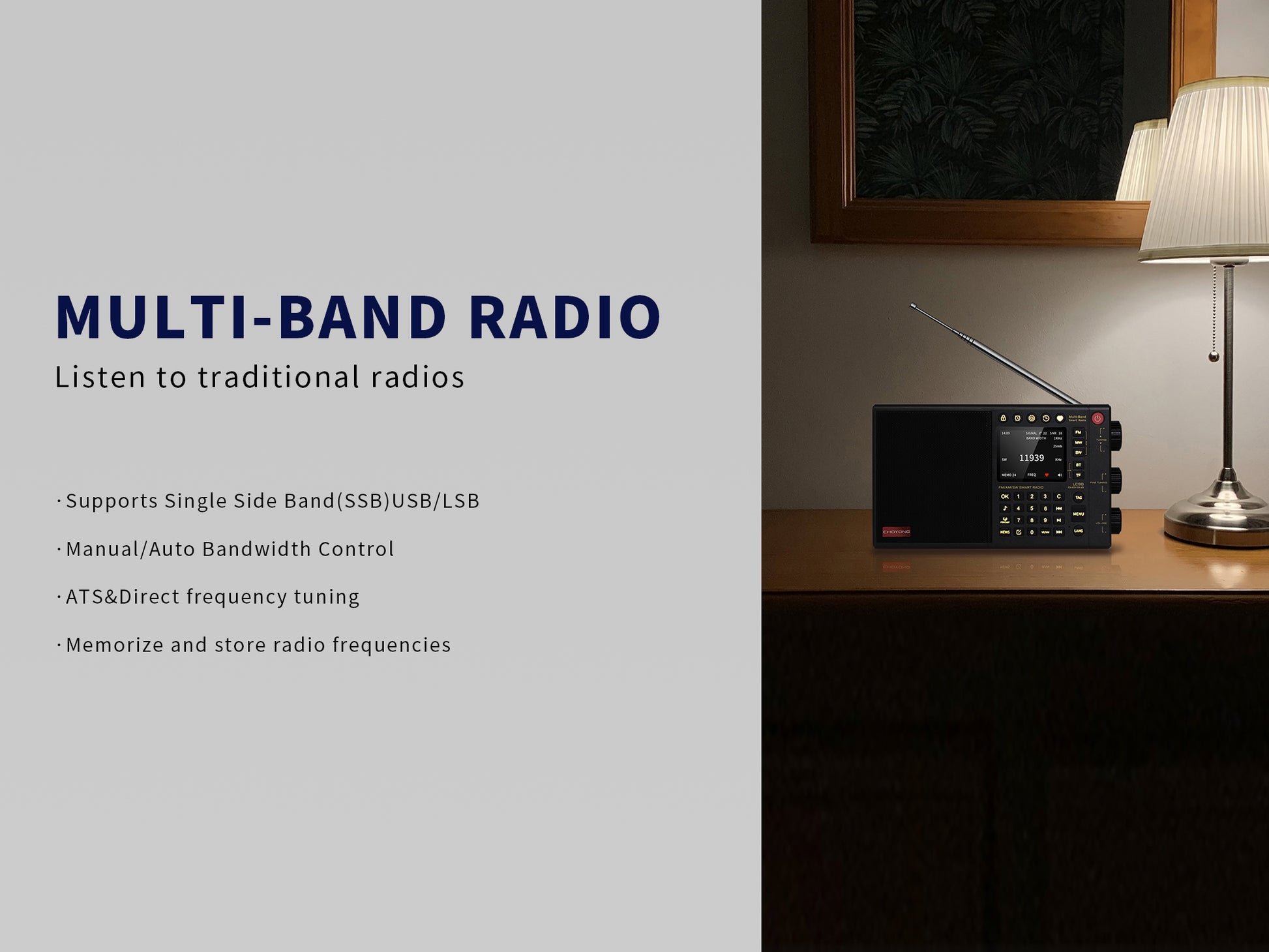 It has many functions and excellent sound quality. I really enjoy listening to the radio. You definitely shouldn't miss CHOYONG Radio.